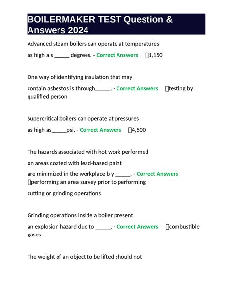 Read free boilermaker test answers Doc online is a convenient and frugal way to read free boilermaker test answers you love right from the comfort of your own home. Yes, there sites where you can get Doc "for free" but the ones listed below are clean from viruses and completely legal to use.