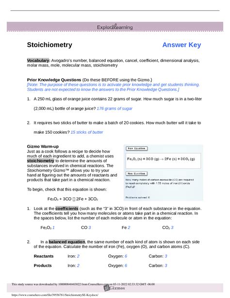 Read Online Pearson Chemistry Workbook Stoichiometry Answer Key Epub